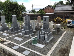 3軒分のお墓でしたので、今度は1軒づつ分けて巻石をしていきます。